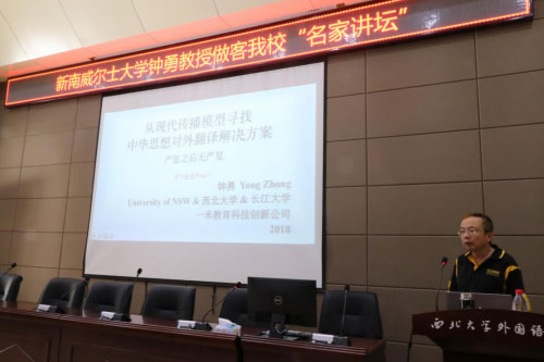 9月21日,澳大利亞新南威爾士大學(xué)、我校中國(guó)文化研究中心特聘教授鐘勇應(yīng)邀做客我校“名家講壇”,為我校師生作了題為“中華思想對(duì)外翻譯傳播模式”的學(xué)術(shù)報(bào)告。