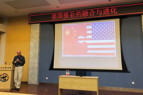 5月27日下午,美國北卡羅來納大學(xué)教堂山分校傳媒與新聞學(xué)院社區(qū)媒體中心主任Jock Lauterer教授為師生作了題為“美國報業(yè)的融合與進(jìn)化”的學(xué)術(shù)報告。新聞傳播學(xué)院百余名師生聽取了報告。報告由新聞傳播學(xué)院來向武教授主持,董海濱副教授全程翻譯。