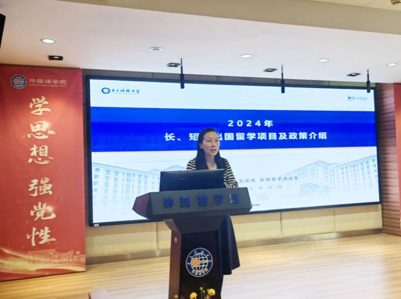 為了助力學(xué)院學(xué)生的留學(xué)深造規(guī)劃,外國(guó)語(yǔ)學(xué)院特別邀請(qǐng)了國(guó)際合作與交流處出國(guó)留學(xué)辦公室主任岳利華到院展開(kāi)專題講座。講座于綜合樓309報(bào)告廳舉行,圍繞留學(xué)申請(qǐng)的各類項(xiàng)目、所需材料以及詳盡流程等方面,為同學(xué)們提供全面而深入的指導(dǎo)。
