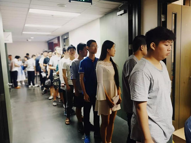來自全國各地的考生在12號(hào)早八點(diǎn)準(zhǔn)時(shí)到達(dá)北外,有條不紊地在考場門口排隊(duì)配合校方進(jìn)行身份核驗(yàn)及考試簽到。