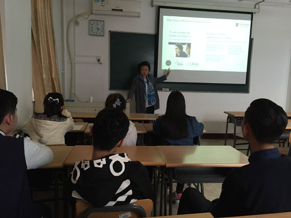 4月12日下午5時,莫納什大學(xué)的朱久華教授蒞臨我校進行兩校2+2項目的相關(guān)講座。這次主要講的2+2項目以及入學(xué)后怎么選專業(yè),選課之類的,還有不同校區(qū)開設(shè)的專業(yè),上課的模式等。在講座的最后,朱教授為學(xué)生們進行的疑惑解答。