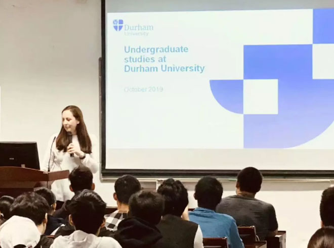 10月25日,杜倫大學國際班招生負責人Kate女士來訪浙江大學外國語言文化與國際交流學院國際課程中心,并給學生帶來了一場別開生面的分享會。講座中,Kate女士詳細介紹了杜倫大學的基本情況、優(yōu)勢專業(yè)、地理位置等,同學們都收獲滿滿喲~
