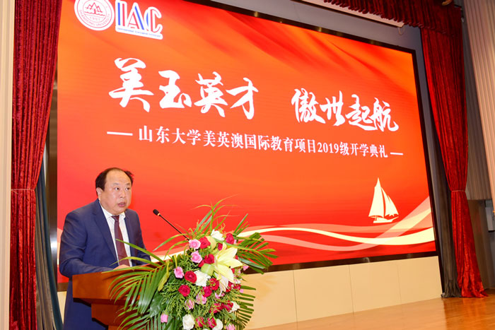 典禮上,劉燦偉代表學(xué)校向2019級美英澳學(xué)生表示歡迎,并希望廣大學(xué)生樹立遠大理想,堅持終身學(xué)習(xí)理念,早日實現(xiàn)求學(xué)夢想。曹廷求代表學(xué)院致辭,希望廣大學(xué)生珍惜美好時光,發(fā)憤圖強,報效祖國。馮一江向同學(xué)們介紹了昆士蘭大學(xué),并對同學(xué)們未來的學(xué)習(xí)規(guī)劃提出了建議。教師代表李曉重點介紹了雅思學(xué)習(xí)的特點,鼓勵大家克服時間緊任務(wù)重的困難,早日實現(xiàn)理想。往屆生代表臧碩通過講述自己在山大和海外高校求學(xué)的經(jīng)歷和感悟,表達了對山大培養(yǎng)的感激之情。新生代表趙晨羽表示既對在百年老校的學(xué)習(xí)生活充滿期待,也做好了克服一切困難,努力拼搏,早日實現(xiàn)學(xué)成報國夢想的準(zhǔn)備。典禮最后,石紹賓作總結(jié)發(fā)言,希他望同學(xué)們在國際化教育的浪潮中,能積極學(xué)習(xí),博聞通達,創(chuàng)造屬于自己最精彩的篇章。