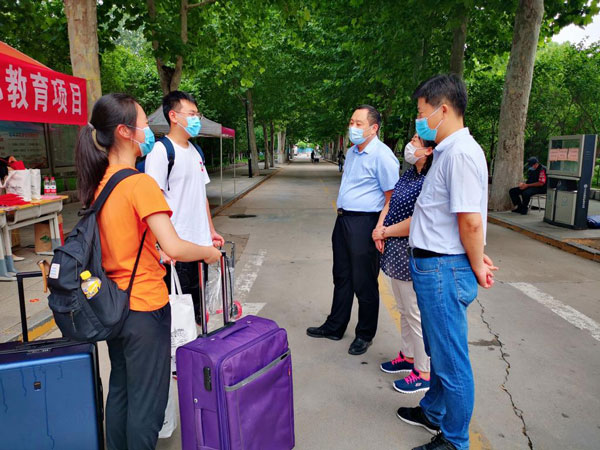 報(bào)到現(xiàn)場(chǎng),返校學(xué)生在老師的引導(dǎo)下,積極配合身份核驗(yàn)、體溫檢測(cè)、行李消毒等各項(xiàng)工作。學(xué)校黨委副書記仝興華,公安處處長(zhǎng)胡長(zhǎng)玉、副處長(zhǎng)董太華,繼續(xù)教育學(xué)院院長(zhǎng)靳光華、副院長(zhǎng)劉燦偉到洪家樓校區(qū)返校現(xiàn)場(chǎng)檢查返校工作,慰問(wèn)返校學(xué)生和現(xiàn)場(chǎng)的工作人員,對(duì)山東大學(xué)美英澳國(guó)際教育項(xiàng)目學(xué)生返校工作安排給予充分肯定,對(duì)如何進(jìn)一步做好疫情防控工作提出了指導(dǎo)意見。經(jīng)濟(jì)學(xué)院黨委書記王秀麗、副院長(zhǎng)石紹賓、辦公室主任馬燕陪同檢查。