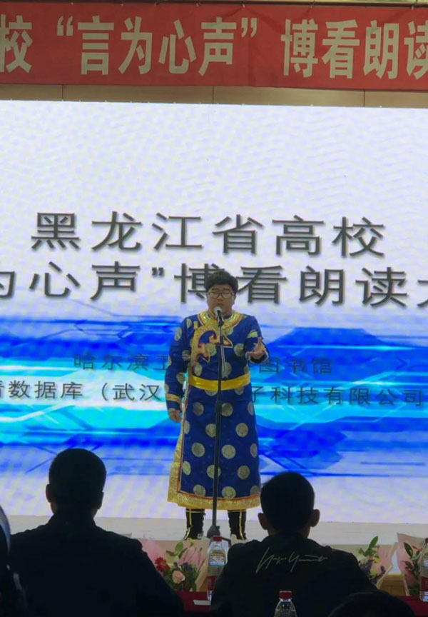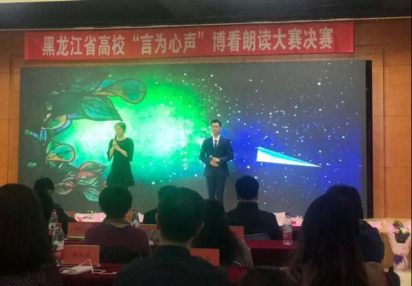 4月21日上午,由哈爾濱工業(yè)大學主辦、博看數據庫承辦的“言為心聲”博看朗讀大賽決賽在哈爾濱工業(yè)大學活動中心101舉行。廣廈學院2018級應用心理學一班的黃飛博同學在面對眾多優(yōu)秀的選手時,不負眾望超長發(fā)揮并最終取得優(yōu)異的成績。