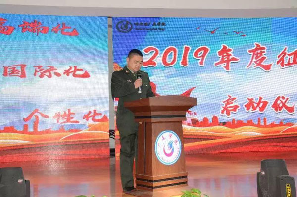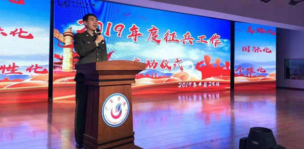 4月25日晚18時,哈爾濱廣廈學院2019年征兵工作啟動儀式在圖書館五樓報告廳舉行。學校領導、校武裝部、學生工作處主要負責同志及各二級學院黨總支書記、輔導員老師、學生代表共計600余人參加了啟動儀式。儀式由校武裝部劉寶山老師主持。