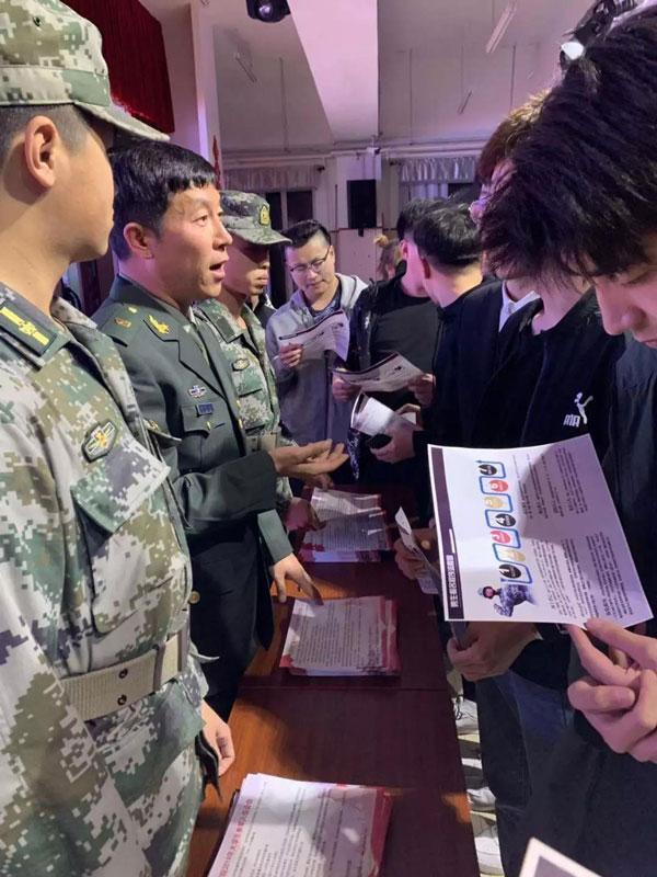 學校還將在學生公寓、各教學樓、食堂設立征兵政策咨詢臺,充分利用微信、微博、校園網(wǎng)、廣播站宣傳征兵政策,同時組織召開征兵政策宣講會、退役大學生士兵先進事跡宣講會,通過多種形式、多種渠道的征兵宣傳動員,激勵有志青年投身軍營,為國建功。