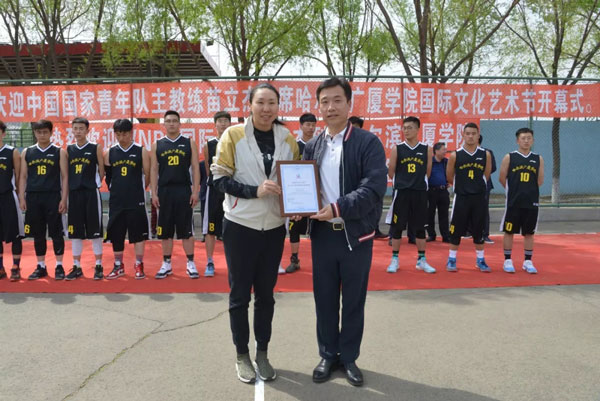 5月10日,中國國家青年隊(duì)主教練、中國人民解放軍八一青年隊(duì)主教練、前國家女籃隊(duì)長、2008奧運(yùn)會得分王苗立杰走進(jìn)哈爾濱廣廈學(xué)院,指導(dǎo)哈爾濱廣廈學(xué)院籃球隊(duì),助力哈爾濱廣廈學(xué)院國際文化藝術(shù)節(jié)開幕式。