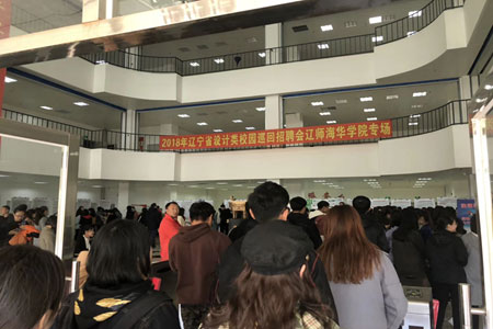 為更好的服務(wù)遼寧,促進(jìn)我校應(yīng)屆畢業(yè)生就業(yè),搭建學(xué)生與企業(yè)溝通的平臺(tái),近日,我校與省就業(yè)局合作舉辦的2018年遼寧省設(shè)計(jì)類校園巡回招聘會(huì)遼寧師范大學(xué)海華學(xué)院專場,在圖書館順利舉行,招聘會(huì)共有30多家用人單位提供了近750個(gè)工作崗位。我校近千名學(xué)生來到招聘會(huì)現(xiàn)場進(jìn)行應(yīng)聘。招聘會(huì)現(xiàn)場氣氛火熱,秩序井然。