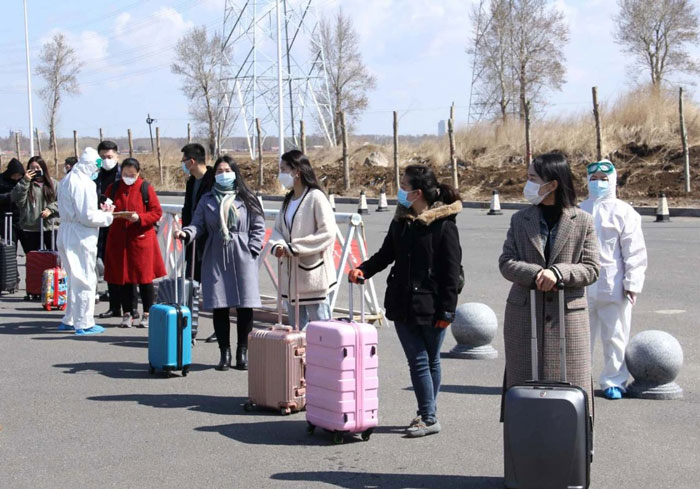 在學生返校報道入校門檢環(huán)節(jié)演練中,由保衛(wèi)處人員引領學生按照規(guī)劃好的入校通道間隔一米以上有序排隊,經過身份核實、入校登記和測溫等環(huán)節(jié)后,統一從學校東門入校。并對體溫出現異?;虿环戏敌l件的學生給予針對性處理。為減少校內人員聚集,陪同人員一律不準入校。