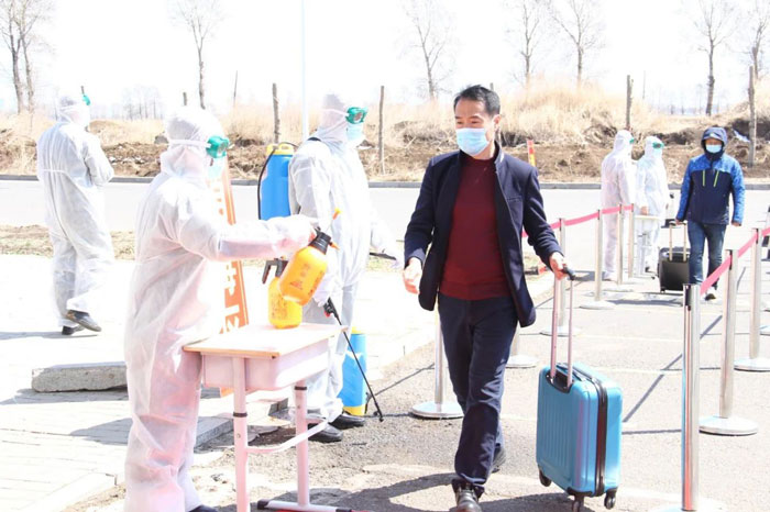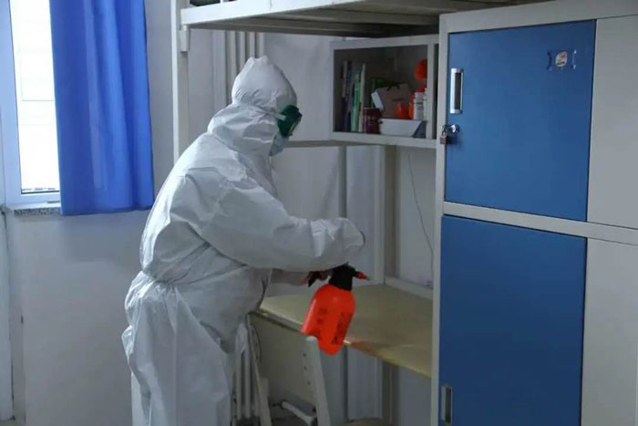 在學生寢室入住環(huán)節(jié)演練中,對所有進入公寓的同學進行消毒和體溫檢測,測溫合格登記后方可進入,體溫異常的學生由專門人員帶到臨時隔離區(qū)進行二次測溫。同時安排專門人員對公寓進行定時消毒,保障公寓衛(wèi)生安全。