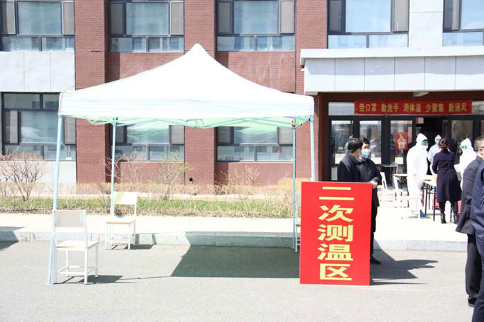 在學生發(fā)熱應急處理環(huán)節(jié)演練中,對于體溫超過37.3℃、經校醫(yī)院醫(yī)護人員復檢后體溫仍異常的學生,立即聯系寬城區(qū)醫(yī)院并撥打120急救中心說明情況。并迅速啟動應急預案,上報學校疫情防控領導小組,對其返程及在校接觸人員進行徹底排查。醫(yī)院檢查結果如若正常,由醫(yī)務人員帶到學校隔離區(qū)進行隔離觀察。