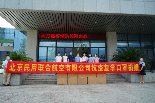 2020年7月28日上午,我校“產(chǎn)學(xué)合作 協(xié)同育人”項(xiàng)目合作辦學(xué)單位——北京民用聯(lián)合航空有限公司向我校捐贈(zèng)2萬(wàn)只防護(hù)口罩,助力我校疫情防控工作。我校副校長(zhǎng)何仕率后勤處、繼續(xù)教育學(xué)院相關(guān)負(fù)責(zé)人與北京民用聯(lián)合航空有限公司代表?xiàng)钗母幌壬捌漤?xiàng)目組相關(guān)負(fù)責(zé)人出席捐贈(zèng)儀式。