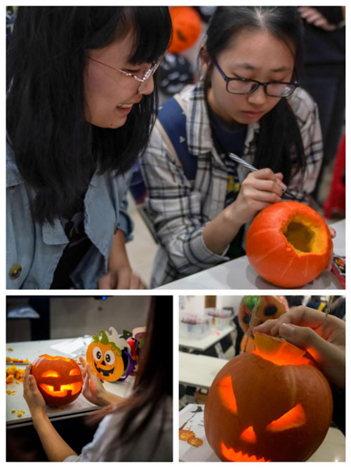 南瓜燈制作是點(diǎn)睛之筆,同學(xué)們在和外籍嘉賓的合作互動(dòng)中了解到了南瓜燈的來歷和制作流程,體驗(yàn)到了動(dòng)手的樂趣,也鍛煉了英語交流能力。