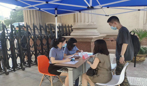 雖然疫情防控手續(xù)繁瑣,但學生報到的熱情絲毫不減。炎炎烈日下,工作人員對每位學生健康碼和行程碼進行確認,讓每一位學生按照疫情防控要求簽定健康承諾書,提醒學生提交14天的體溫檢測表并對其體溫進行現(xiàn)場實時檢測。