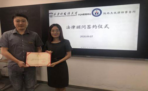 9月7日下午,為了大力弘揚(yáng)法治精神,創(chuàng)建文明、和諧校園,普及法律意識(shí),國(guó)際學(xué)院SQA教育中心給大一學(xué)生在2號(hào)教學(xué)樓舉行了一場(chǎng)“開學(xué)第一課、法制進(jìn)校園”為主題的普法講座。本次講座特邀請(qǐng)陜西杰優(yōu)律師事務(wù)所主任陳小燕律師,就網(wǎng)絡(luò)輿論、校園套路貸、校園戀情勿偏激、遠(yuǎn)離黃賭毒、校園安全等五個(gè)方面進(jìn)行了全面講解,并舉行了法律顧問現(xiàn)場(chǎng)聘任儀式。SQA教育中心工作人員及2020級(jí)全體學(xué)生參加了本次講座。本次講座由輔導(dǎo)員劉晨主持。