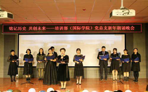 為進一步落實習近平總書記關(guān)于深入加強“黨史、新中國史、改革開放史、社會主義發(fā)展史”學(xué)習的指示精神,鞏固深化“不忘初心,牢記使命”教育成果,激勵廣大黨員、全體師生知黨愛黨、知史愛國、勇于擔當、報效祖國,2020年12月30日晚7點,出國留學(xué)人員培訓(xùn)部(國際學(xué)院)黨總支在雁塔校區(qū)2號教學(xué)樓階梯教室舉辦“銘記歷史 共創(chuàng)未來”迎新年朗誦會,全體師生歡聚一堂,辭舊迎新,誦讀紅色經(jīng)典、重溫百年歷史、歌頌幸福生活、共創(chuàng)美好未來。因疫情防控工作需要,朗誦會僅限教職工和參演學(xué)生,并嚴格按照防控要求做好各項工作。