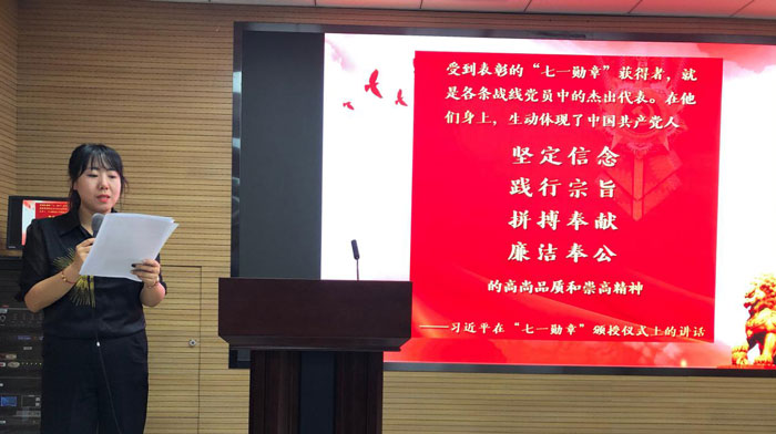 SQA教研室主任王君誦讀《習(xí)近平在慶祝建黨100周年‘七一勛章’頒獎儀式上的講話》,并帶領(lǐng)與會人員觀看張桂梅獲“七一勛章”講話視頻。她指出,SQA項(xiàng)目的全體教師要以張桂梅老師為精神標(biāo)桿,把學(xué)習(xí)先進(jìn)典型的力量轉(zhuǎn)化為守初心、擔(dān)使命的不竭動力,落實(shí)立德樹人根本任務(wù),全身心投入教育事業(yè),推進(jìn)西外SQA項(xiàng)目更快速度、更高質(zhì)量發(fā)展。