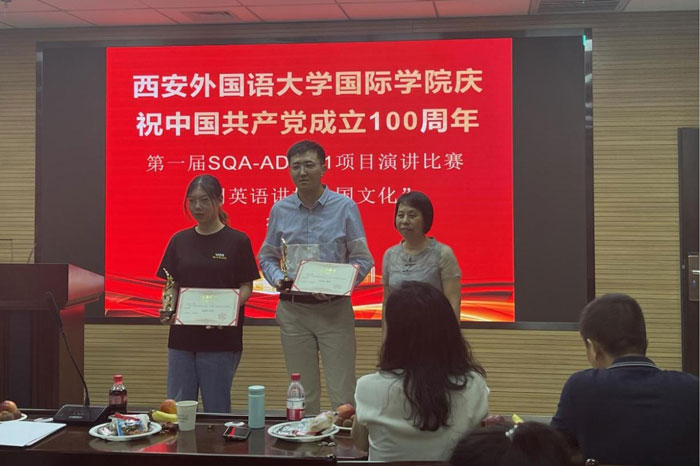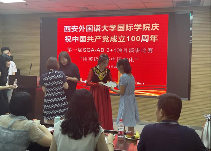 為慶祝中國共產(chǎn)黨100周年華誕,營造愛黨愛國的濃厚氛圍,落實(shí)立德樹人根本任務(wù),堅(jiān)持根植中華優(yōu)秀傳統(tǒng)文化深厚土壤,6月30日下午,西安外國語大學(xué)出國留學(xué)人員培訓(xùn)部·國際學(xué)院SQA-AD 3+1項(xiàng)目舉辦第一屆“用英語講好中國文化”演講比賽。