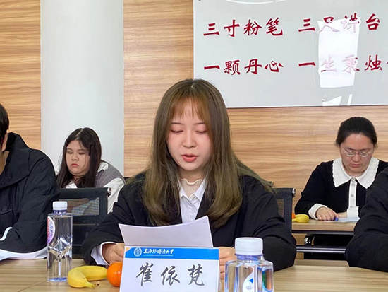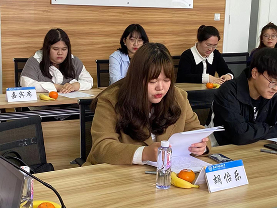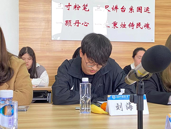 4月13日中午上外海培第七屆“院長杯”讀書報告會在松江校區(qū)423研討室舉行。學院領導、教師代表、輔導員們以及獲獎同學出席本次報告會,學生會主席季穎穎同學主持。