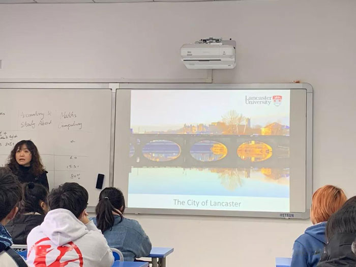 同學(xué)們都懷著邁進(jìn)蘭卡斯大學(xué)的夢想,此時更是渴望提前了解到關(guān)于蘭卡斯特大學(xué)的全面信息,Sophie老師首先詳盡地介紹了蘭卡斯特大學(xué)的自然環(huán)境,學(xué)校的歷史,發(fā)展,目前的各類專業(yè),相關(guān)費(fèi)用等,接下來又對現(xiàn)場同學(xué)們提出的問題都一一做了耐心的解答。