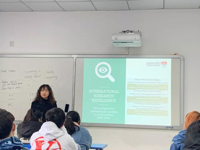 Sophie老師不僅在學(xué)業(yè)上對大家做出了指導(dǎo),例如,怎么根據(jù)自己的雅思分?jǐn)?shù)申請什么樣的專業(yè),哪些專業(yè)是蘭卡斯特大學(xué)的強(qiáng)勢專業(yè)等,還對同學(xué)們?nèi)チ擞笤谏詈惋L(fēng)土人情上該如何適應(yīng)給出了寶貴的建議。到場的師生都覺得這是出國前意義深遠(yuǎn)的一堂課。