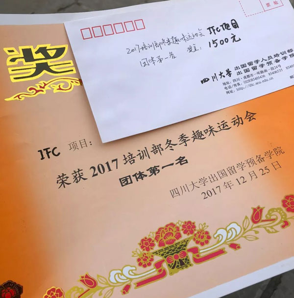 經(jīng)過一下午的激烈拼搏,綜合各項(xiàng)比分,在一年一度的2018屆四川大學(xué)出國留學(xué)預(yù)備學(xué)院的秋季趣味運(yùn)動(dòng)會(huì)上,我們川大IFC國際預(yù)科認(rèn)證課程的運(yùn)動(dòng)健兒們,依然屹立不倒的勇奪“團(tuán)隊(duì)第一名”!