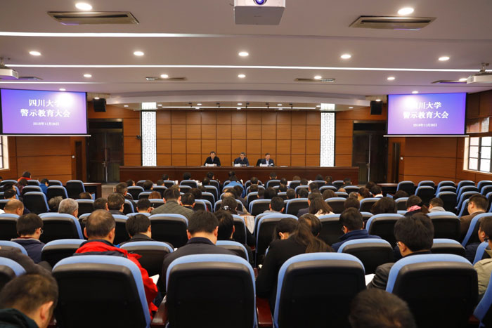 11月28日,學(xué)校在望江校區(qū)明德樓召開警示教育大會,傳達學(xué)習(xí)教育部直屬系統(tǒng)警示教育大會精神,通報近年來學(xué)校查處的違紀(jì)違法典型案例。校黨委書記王建國出席會議并講話。全體校領(lǐng)導(dǎo)、校長助理,校黨委委員和紀(jì)委委員,機關(guān)各部處、業(yè)務(wù)實體、各學(xué)院(醫(yī)院)主要負(fù)責(zé)人,全體專職紀(jì)檢監(jiān)察干部參加會議。會議由校長、校黨委副書記李言榮主持。