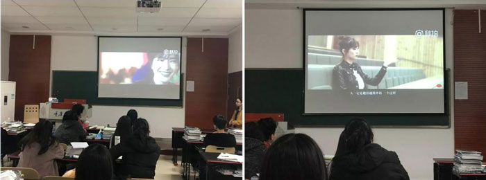 緊接著,她給大家介紹了東英吉利大學(xué)(UEA)的名人校友,《唐頓莊園》里面的馬特·米爾尼、《神秘博士》里面的馬特·史密斯等,其中重點(diǎn)介紹了中國(guó)的影視明星江疏影也是從該校傳媒專業(yè)畢業(yè)的。為了讓大家能夠更加直觀的了解學(xué)校的環(huán)境和設(shè)施,Ella還給大家播放了一段江疏影作為學(xué)校的宣傳大使重返UEA并且?guī)ьI(lǐng)大家參觀學(xué)校的視頻,這讓同學(xué)們都感到非常的親切。