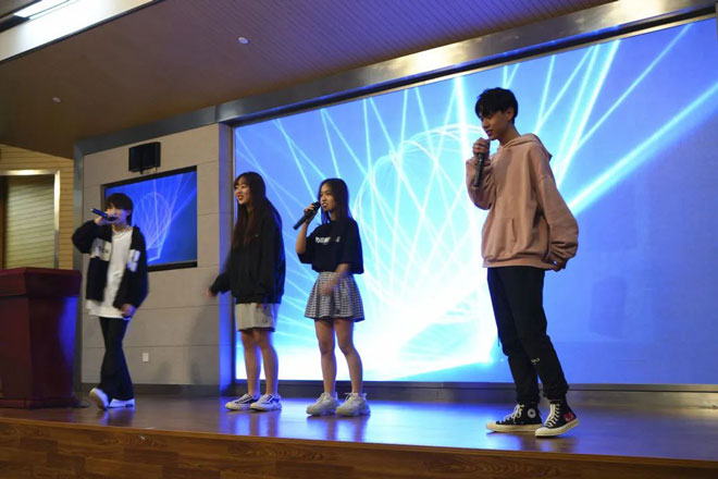 在節(jié)目表演和游戲的過(guò)程中,每一位學(xué)生都得到了“展示自我、挑戰(zhàn)自我”的機(jī)會(huì)。同時(shí),這場(chǎng)活動(dòng)有效培養(yǎng)和加強(qiáng)了我校學(xué)生的協(xié)作能力和凝聚力,提升了同學(xué)們?cè)谛5男腋V笖?shù)。