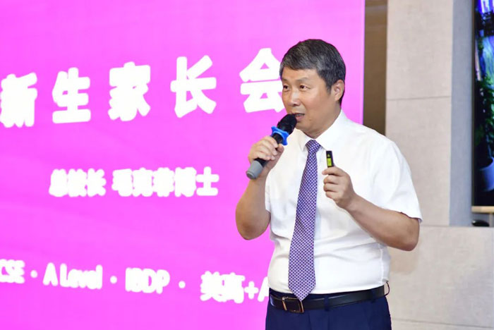 下午,為貫徹落實防疫要求,學校特地分時段、分年級召開了兩場新生家長會。會上,華二紫竹國際學院總校長毛克非博士首先對2021屆新生和家長的到來表示熱烈歡迎,并從任務和目標、轉變中的“掙扎”、課程體系、評價與考試、有效學習的方法與措施等多角度進行了分享。