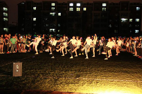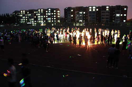 此次活動(dòng)通過網(wǎng)絡(luò)和現(xiàn)場(chǎng)報(bào)名的學(xué)生有三百余名,主辦方為參加活動(dòng)的同學(xué)準(zhǔn)備了熒光眼鏡、熒光發(fā)卡、熒光彩帶和熒光漆等裝備,鼓勵(lì)大家自行設(shè)計(jì)服裝主題和內(nèi)容。在現(xiàn)場(chǎng)司儀激情的號(hào)召中,學(xué)生穿著個(gè)性的熒光服飾并佩戴有個(gè)人特點(diǎn)的熒光裝備歡快起舞,并有序的從體育場(chǎng)出發(fā),沿指定路線奔跑,此次熒光夜跑途經(jīng)城建體育場(chǎng)、圖書館、人工湖、燈光體育場(chǎng)、第二教學(xué)樓、第四教學(xué)樓等校園內(nèi)主要建筑,將安靜昏暗的小路裝點(diǎn)得熒光絢爛,活力四射,途中,身背音響的工作人員穿插在人群中,激情的音樂,響亮的口號(hào)成為鼓舞士氣的催化劑,將現(xiàn)場(chǎng)氣氛一次次推向高潮。