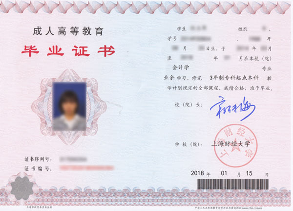學生在校期間通過成人高考,修完教學計劃規(guī)定的全部課程,經(jīng)各科考試成績合格,可獲得國家統(tǒng)一印制,教育部電子注冊,由上海財經(jīng)大學頒發(fā)的成人高等教育本科畢業(yè)證書,國家承認其學歷;符合學士學位授予條件的本科畢業(yè)生,可授予上海財經(jīng)大學成人高等教育學士學位證書。學生可根據(jù)所學專業(yè),在校自愿考取相應的職業(yè)資格證書,如銀行從業(yè)資格證書、證券從業(yè)資格證書、保險從業(yè)資格證書、基金從業(yè)資格證書、全國英語四、六級證書、計算機等級證書、普通話證書等。