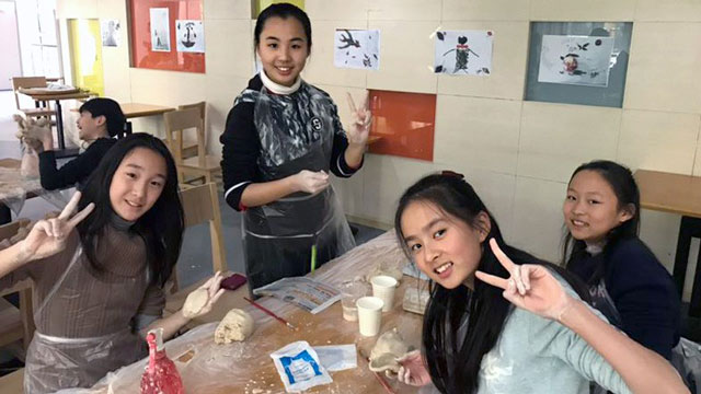 先是指導(dǎo)老師講解陶土、顏料,以及揉捏方法?!笆紫任覀儠?huì)發(fā)給大家一塊實(shí)泥,然后我們要像揉面一樣,把它揉得很軟。由于它是干的,所以在揉的時(shí)候,大家要不停地加水。揉泥一方面是使陶泥有可塑性,另一方面是把陶泥里的氣泡排出,這樣作品上面就不會(huì)有泡泡出現(xiàn)?!?