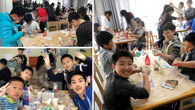 聽(tīng)著似乎不難,但是一發(fā)下陶泥,大家才發(fā)現(xiàn),沒(méi)有想象的簡(jiǎn)單:一塊硬的像石頭的陶泥,無(wú)論怎么揉似乎都無(wú)法松軟下來(lái)。有的學(xué)生嫌坐著使不上勁,干脆站了起來(lái),用全身的勁用力碾壓陶泥;有的加了太多水,讓陶泥變成了滑溜溜的泥漿,無(wú)法挽救;還有的揉了半天,陶泥依舊毫無(wú)起色,挺著身板不肯屈服。還有的同學(xué)不小心碰翻了杯子,泥漿濺到臉上,成了“小花貓”,真是狀況百出。