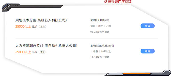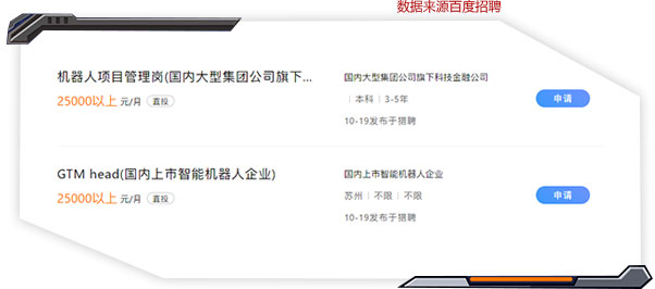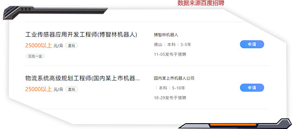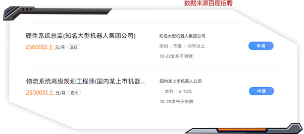 中國機械工業(yè)聯(lián)合會統(tǒng)計數(shù)據(jù)表明,中國當(dāng)前機器人應(yīng)用人才缺口20萬,并且以每年20%~30%的速度持續(xù)遞增。