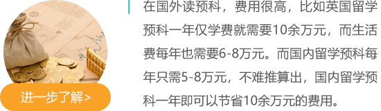 碩士預(yù)科是為準(zhǔn)備入讀國外高校碩士階段課程的國際學(xué)生設(shè)計的全日制課程,國內(nèi)1年,國外高校1~2年。1+1/2一般由國內(nèi)的知名院校和國外的高校聯(lián)合創(chuàng)辦的,學(xué)生可以享受兩所院校的教學(xué)資源。